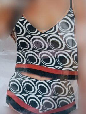 ست شورت و سوتین مشکی گل قرمز کد 5507