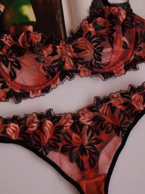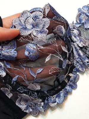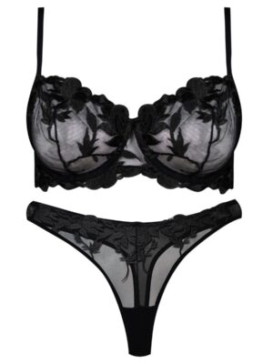ست شورت و سوتین برتا فنردار کد 2420-BT مشکی با گل آبی