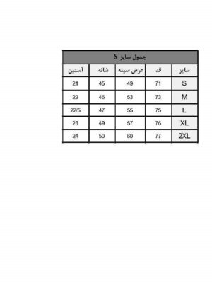 عرض سینه ۵۱ سانت ، طول پیراهن ۷۳سانت , قد آستین ۶۰ سانت، قد شلوار ۹۵ سانت