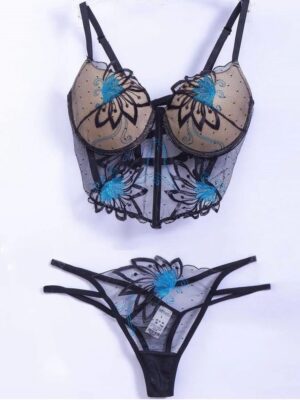 ست شورت و سوتین اسفنجی فنردار بلند برند برتا کد 6080 سرمه ای کرم