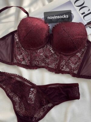 ست شورت وسوتین اسفنجی فنرداربلند برند برتاکد 6043 عنابی