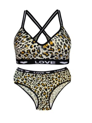 ست شورت و نیم تنه اسفنجی کد 105051 پلنگی طلایی