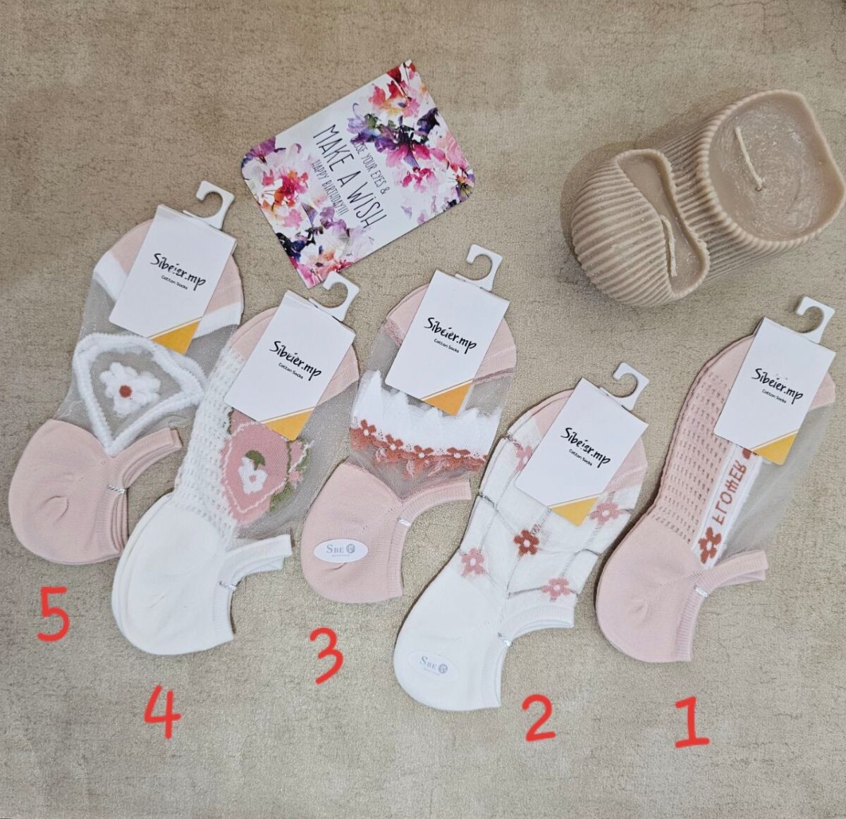 جوراب زیرقوزکی شیشه ای گل صورتی 1035
