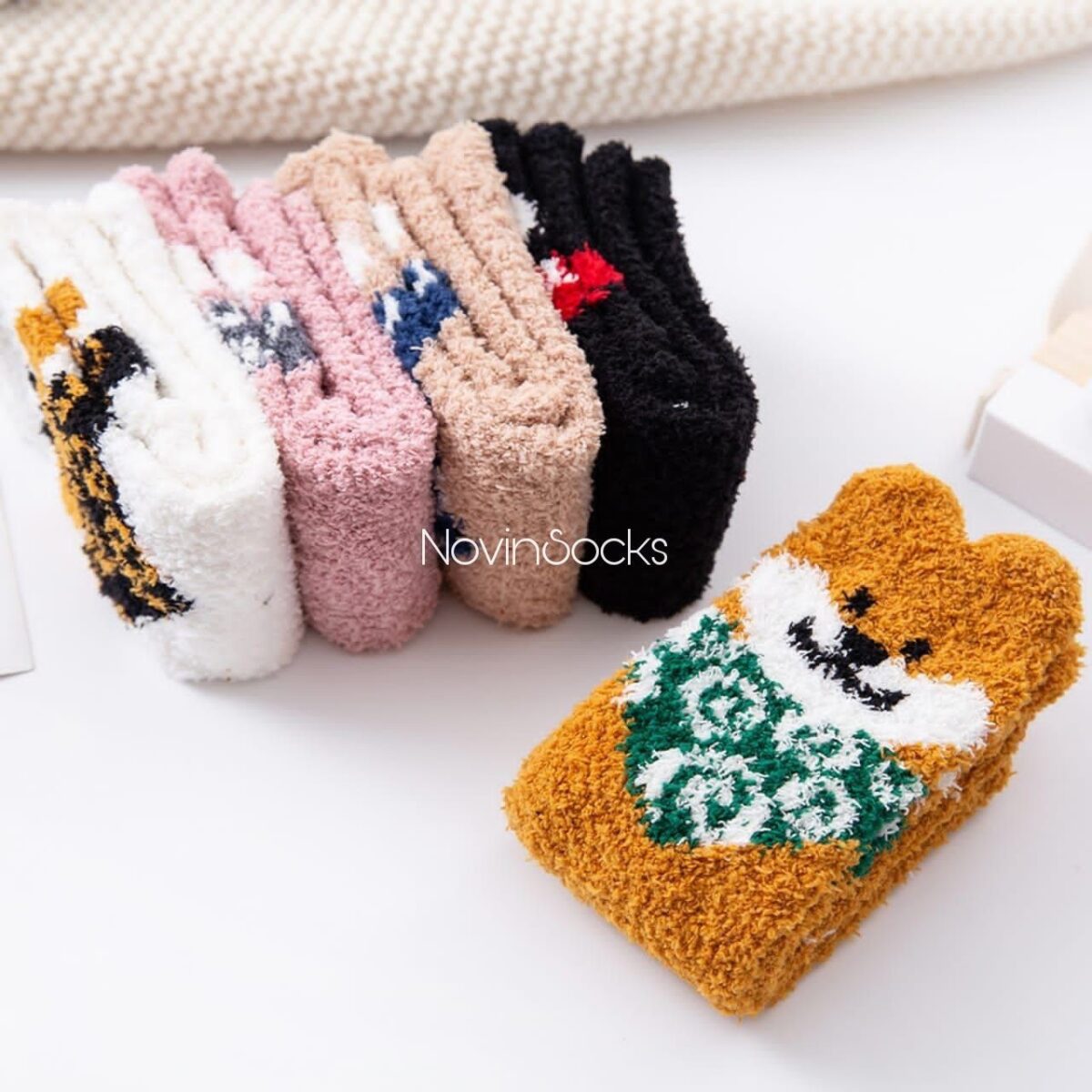 جوراب ساقدار حوله ای طرح سگ های خوشحال ( جوراب گرم)
