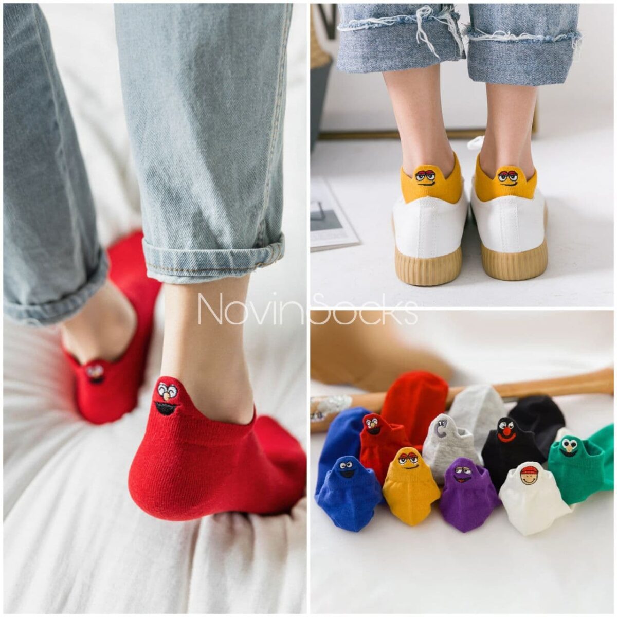 جوراب کاملا سالم است و مشابه عکس ها در پشت جوراب استیکر گلدوزی شکلک وجود دارد اما طرح و رنگ به صورت رندوم ارسال می شود.