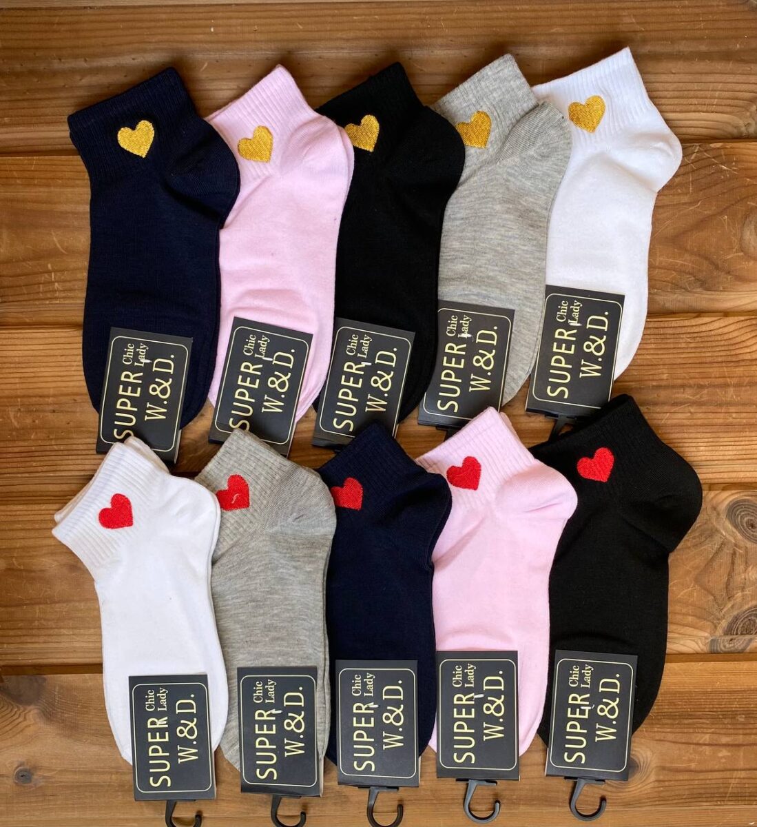 طرح قلب روی جوراب گلدوزی شده است.
