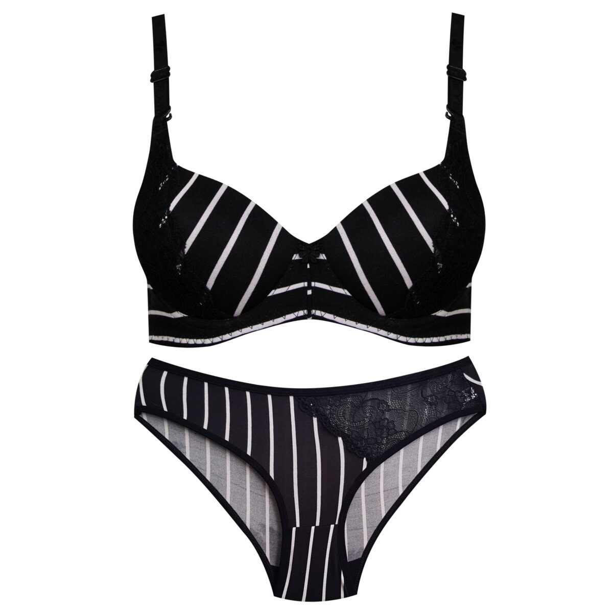 ست شورت و سوتین اسفنجی مشکی راه راه 104689