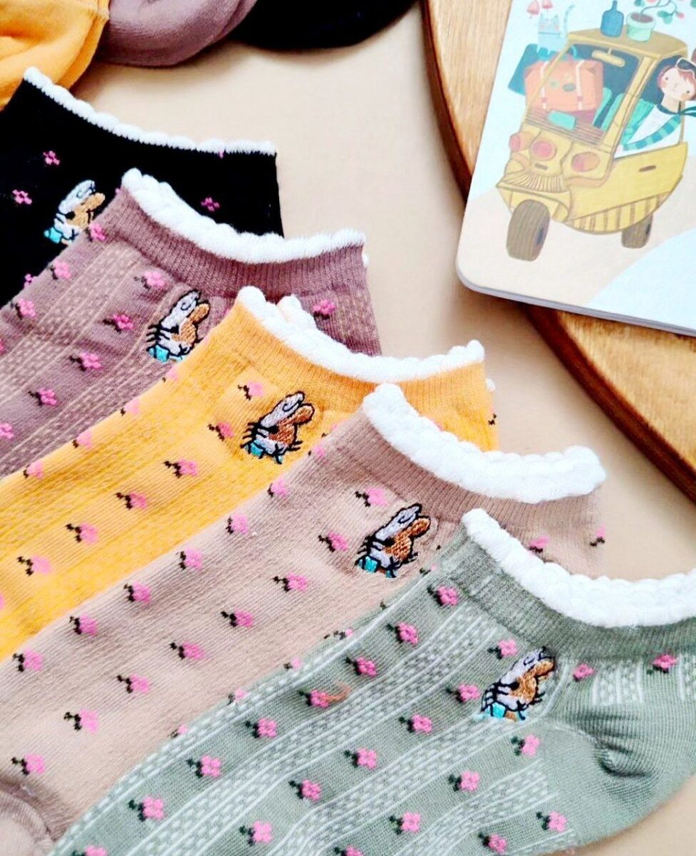 جوراب زیرقوزکی شیشه ای گل صورتی 1035