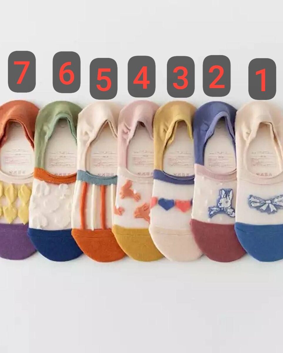 1 ,2 ,3 ,جوراب سبز جلو زرد وسط تور با یک گل طرح 8 ,5 ,6 ,جوراب آبی جلو کرم راه راه گلدار طرح 9 |