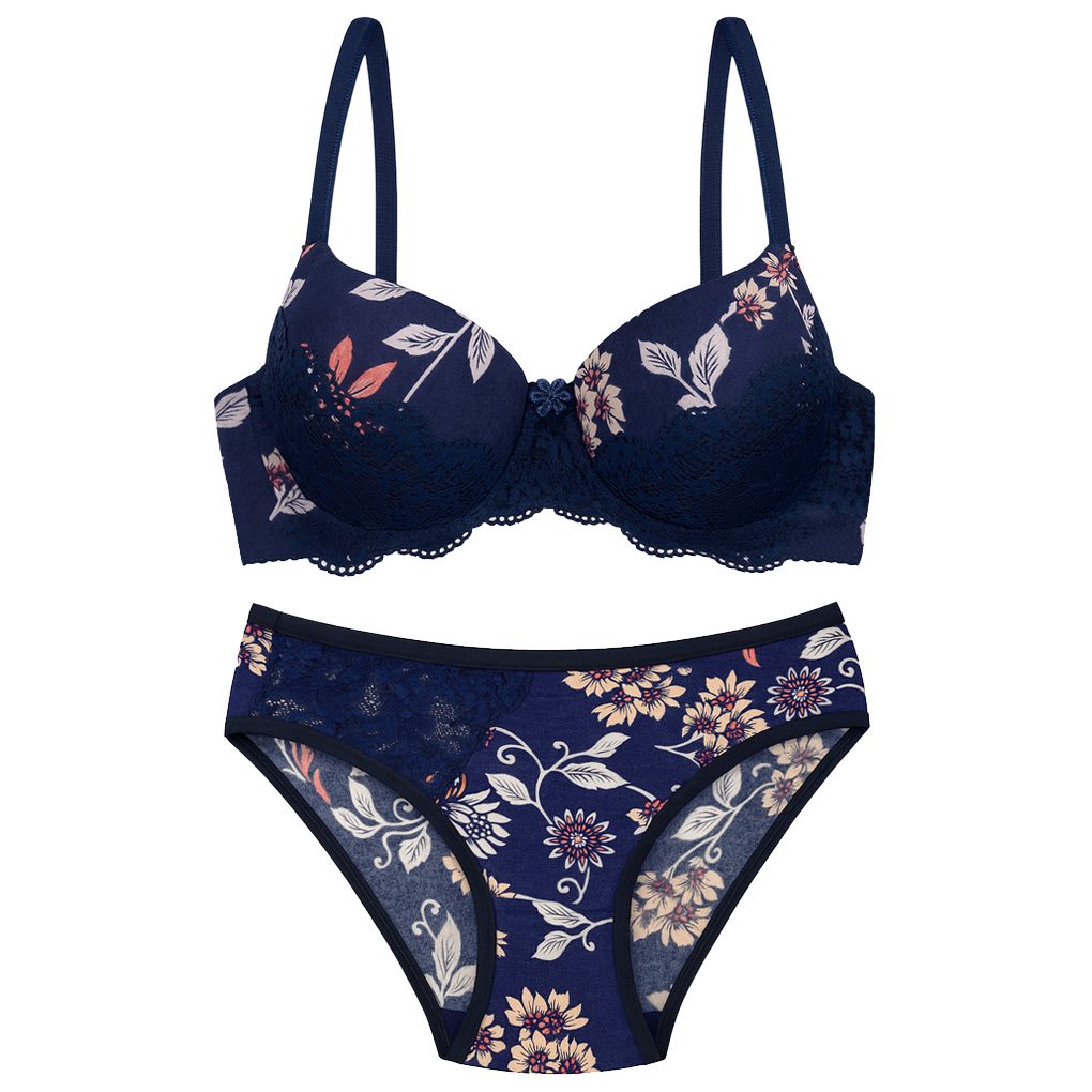 ست اسفنجی پوش فنردار سرمه ای گلدار کد 5571-1