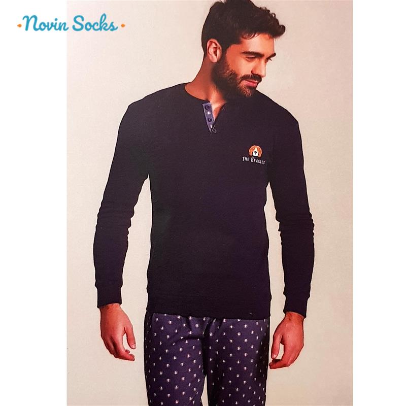 ست تی شرت آستین بلند و شلوار مردانه لین مدل نخ پنبه کد 5197-499