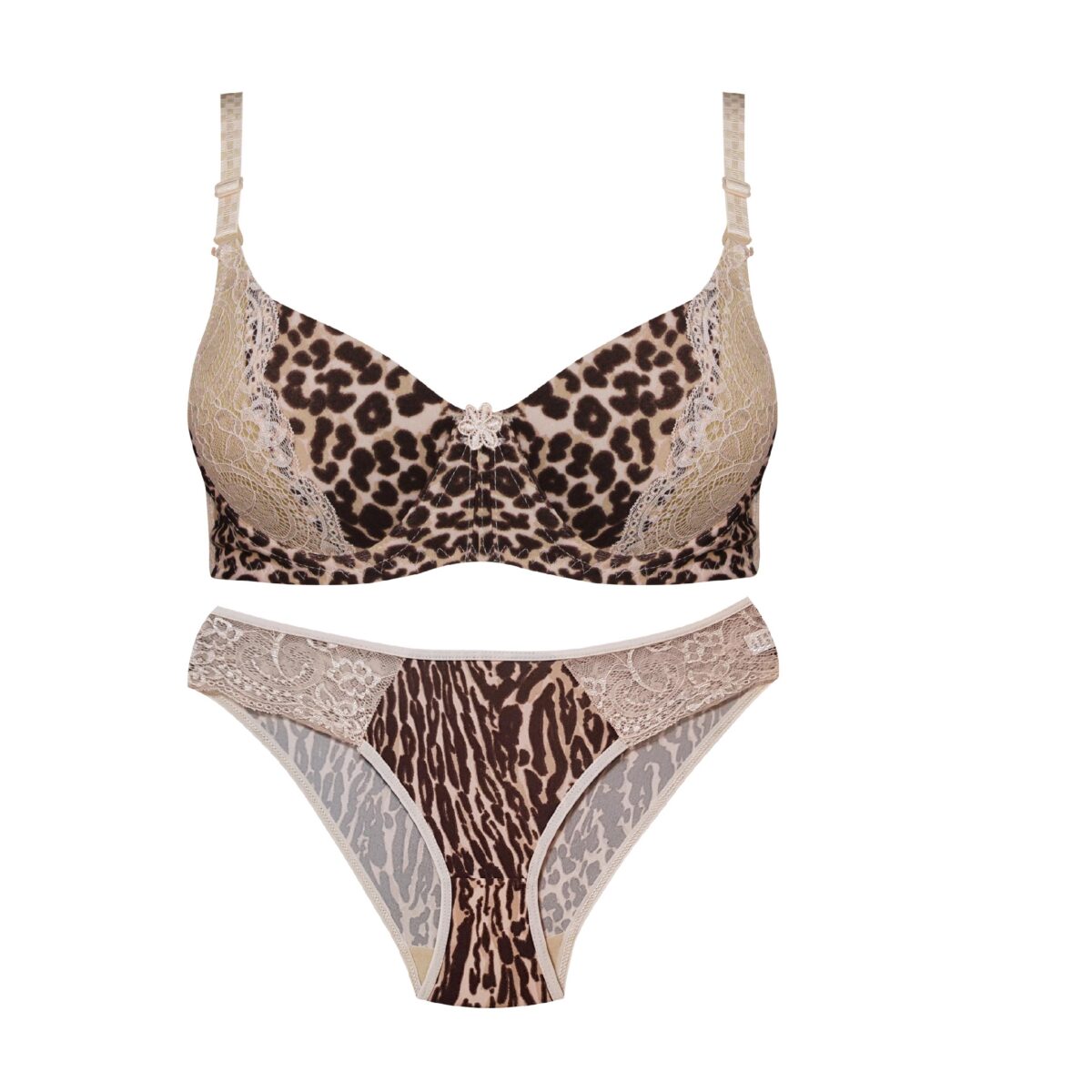 ست شورت و سوتین اسفنجی کد 104689 پلنگی کرم
