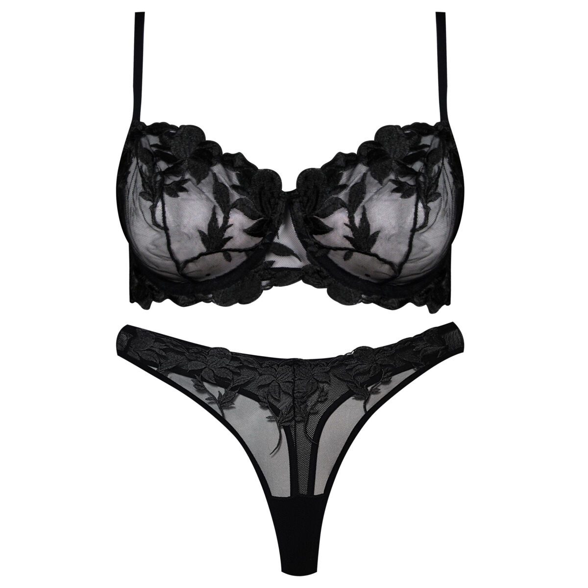 ست شورت و سوتین برتا فنردار کد 2420-BT مشکی با گل آبی