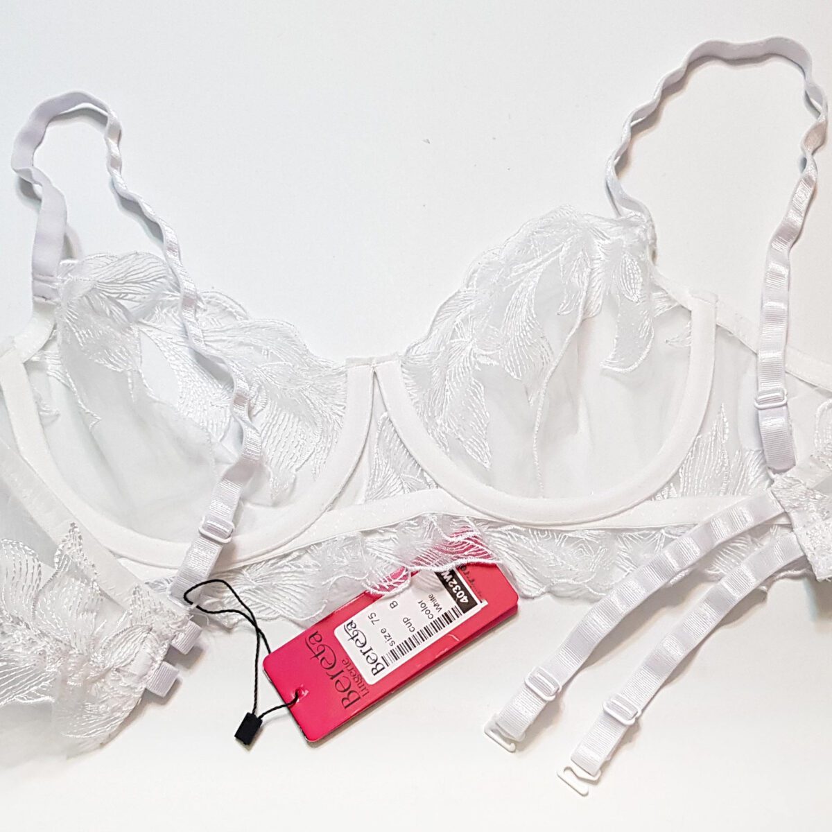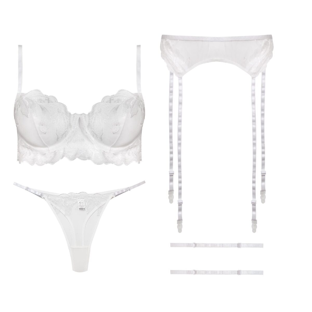 ست شورت و سوتین برتا فنردار کد 4032-W سفید به همراه نگهدارنده جوراب