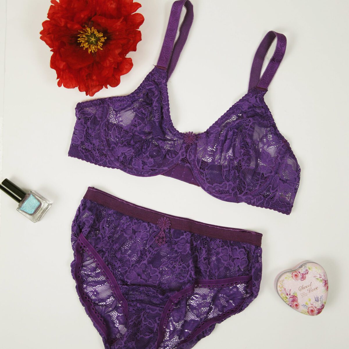 ست شورت و سوتین فنردار قلبی کد 109046 بنفش