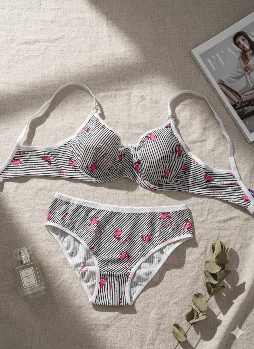 ست فنردار نخی کد 105466 سفید با راه راه فلامینگو