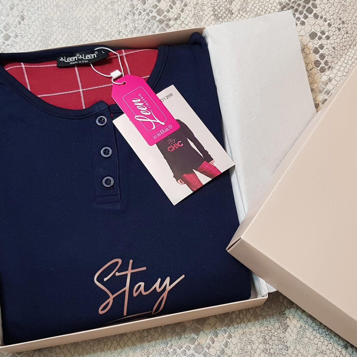 عرض سینه ۵۴ سانت ، طول پیراهن ۷۰ سانت ، قد استین ۶۳ سانت ، قد شلوار ۹۸ سانت