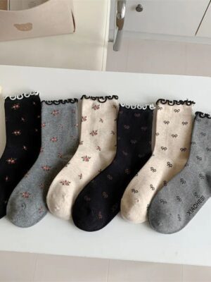 جوراب ساقدار گل گلی لب فر کد 1801