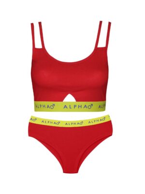 ست شورت و نیم تنه برند کوزا کد109142 قرمز با کش زرد